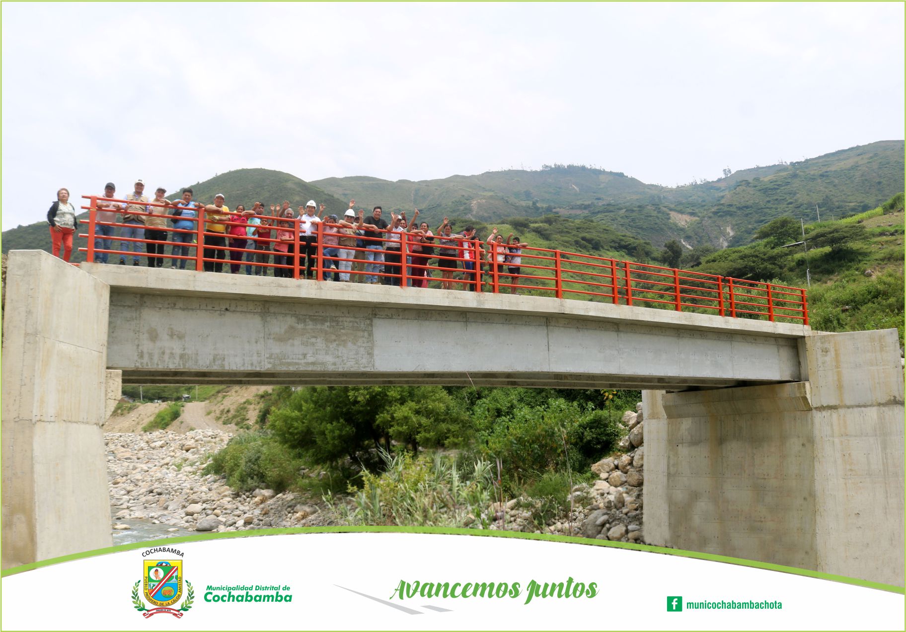 La Municipalidad Distrital de Cochabamba inauguró el puente vial en la localidad de Santa Isolina Bajo. Esta nueva infraestructura, fue ejecutada con una inversión de S/ 2.5 millones de soles, financiado por el Ministerio de Transportes y Comunicaciones.